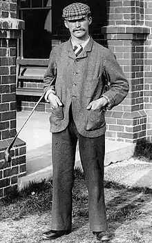 Taylor was born in Northam, Devon. He was a member of the fabled Great Triumvirate of the sport in his day, along with Harry Vardon and James Braid, and he won The Open Championship five times.[1] Born into a working-class family, and orphaned as a boy, he began work as a caddie and labourer at the Royal North Devon Golf Club (also known as Westward Ho!) at the age of eleven. He was employed as a caddie and houseboy by the Hutchinson family and was tasked to carry the bag of Horace Hutchinson.[2] He became a professional golfer at 19, and was employed by Burnham & Berrow Golf Club, the Winchester (later Royal Winchester) Golf Club – while there winning in successive years the first two of his Open Championships – then the Royal Wimbledon Golf Club, before eventually moving to the Royal Mid-Surrey Golf Club from 1899 until his retirement in 1946.