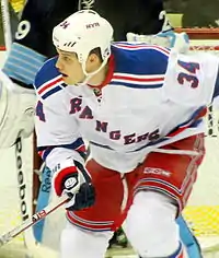 On February 28, 2011, Mitchell was traded from the Toronto Maple Leafs to the New York Rangers in exchange for a seventh round draft pick in 2012.[2] After starting the 2011–12 season with the Rangers AHL affiliate Connecticut Whale, Mitchell was called up to the Rangers for a game on November 25, 2011, in which he registered his first point for the Rangers by assisting on a goal by Brian Boyle.[3][4]