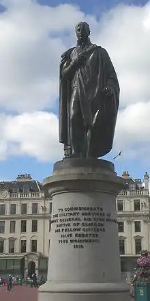 The monument was rebuilt and made more permanent in 1811. In his native Glasgow he is commemorated by a statue in George Square, and in England by a monument in St Paul's Cathedral.[18] Houses are named for him at The High School of Glasgow and HM Queen Victoria School, Dunblane. Sir John Moore Avenue is in Hythe Kent near the Royal Military Canal.[19]