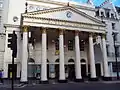 The other theatre was the Theatre Royal Haymarket (1821), with its fine hexastyle Corinthian order portico, which still survives, facing down Charles II Street to St. James's Square, Nash's interior nolonger survives (the interior now dates from 1904).[63]