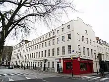 Nash was a vehement advocate of the neoclassical revival endorsed by Soane, although he had lost interest in the plain stone edifices typical of the Georgian style, and instead advocated the use of stucco.[77] Decimus Burton entered the office of Nash in 1815,[78] where he worked alongside Augustus Charles Pugin, who detested the neoclassical style.[79] Decimus established his own architectural practice in 1821.[80] In 1821, Nash invited Decimus to design Cornwall Terrace in Regent's Park, and Decimus was also invited by George Bellas Greenough, a close friend of the Prince Regent, Humphry Davy, and Nash, to design Grove House in Regent's Park.[81]