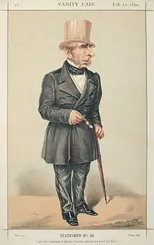 In 1871 Pakington addressed the Social Science Congress, speaking on the "New Social Alliance", with which Disraeli was toying.[20] The term referred to discussions being held between Conservative Party leaders and workers' representatives.[21] They aroused hostility from Tory backbenchers;[22] and George Charles Brodrick called it a "semi-communistic programme".[23] Pakington had joined the ephemeral movement of John Scott Russell, signing with Stafford Northcote, Gathorne Hardy and some of the House of Lords a memorandum on social reform measures to be taken, the "seven points".[24][25] In October, in an article "The New Social Movement", the Saturday Review commented: