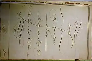 ![]() Signature of Captain John Perkins from the Logbook of HMS Arab 1800, held at the National Archives, Kew, London | |