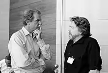 In 2012, Barlow was one of the founders of the EFF-related Freedom of the Press Foundation and also served on its board of directors until his death.[55] Barlow had several public conversations via video conference with fellow Freedom of the Press Foundation Board of Directors member Edward Snowden,[56][57] and has appeared in interviews with Julian Assange of WikiLeaks touting Snowden as "a Hero".[58]