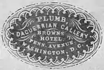 - Washington, DC—Plumbe National Daguerrian Gallery, Pennsylvania Ave., Main St., Walnut St.[8]