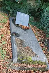 He is buried in Kensal Green Cemetery in London on the edge of a southern spur path. The grave has a new plaque to compensate for the original worn slab.
