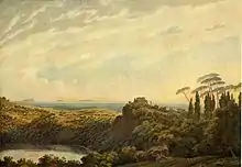 The son of the Russian-born drawing master and watercolourist Alexander Cozens, John Robert Cozens was born in London. He studied under his father and began to exhibit some early drawings with the Society of Artists in 1767. In 1776 he displayed the large oil painting, A Landscape with Hannibal in His March Over the Alps, Showing to His Army the Fertile Plains of Italy (now lost) at the Royal Academy in London.[2] This painting was the only oil that Cozens exhibited at the Academy and was the inspiration for J. M. W. Turner's famous painting of 1812.[3]