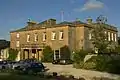 In 1804, he remodelled Ramsey Abbey (none of his work there now survives);[93] the remodelling of the south front of Port Eliot and new interiors (1804–06); the Gothic Library at Stowe House (1805–06); Moggerhanger House (1791–1809); for Marden Hill, Hertfordshire, Soane designed a new porch and entrance hall (1818);[94] the remodelling of Wotton House after damage by fire (1820); a terrace of six houses above shops in Regent Street London (1820–21), demolished;[95] and Pell Wall Hall (1822). Among Soane's most notable works are the dining rooms of both Numbers 10 and 11 Downing Street[96] (1824–26) for the Prime Minister and Chancellor of the Exchequer respectively of Great Britain.