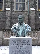 In the summer of 2004, a bust of John Strachan was erected in the quadrangle of Trinity College at the University of Toronto. Strachan Avenue, running from the original site of Trinity College to Lake Shore Blvd., is also named in his honour.