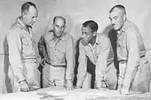 After the Island Headquarters of Japanese Army was conquered, Walker radioed to the Commander of Amphibious Group Two, Rear Admiral Harry W. Hill: "I present you with the island of Parry".[4] Walker was subsequently decorated with the military's second-highest decoration awarded for valor in combat, Navy Cross.[5] He also received the Navy Unit Commendation.[2][6]
