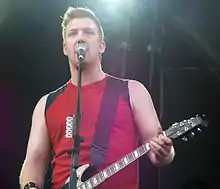 "John Wayne" is a song recorded by American singer Lady Gaga, for her fifth studio album, Joanne (2016). Gaga co-wrote and co-produced the track with Mark Ronson and BloodPop, with additional writing from Josh Homme who also played guitar. "John Wayne" is a pop rock song that features elements of country, disco, funk, and house music. It derives its name from American actor John Wayne, who was known for his roles in Western films. The lyrics talk about Gaga's romantic craving for a wild, blue-collar man and smoking cannabis. Some critics felt that "John Wayne" might portray Gaga's relationship with her ex-fiancé Taylor Kinney.