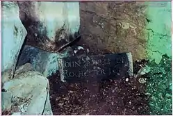 In June 1675 "Lord Rochester in a frolick after a rant did ... beat downe the dyill (i.e. sundial) which stood in the middle of the Privie Garding, which was esteemed the rarest in Europ".[23] John Aubrey learned what Rochester said on this occasion when he came in from his "revells" with Charles Sackville, Lord Buckhurst, and Fleetwood Sheppard to see the object: "'What… doest thou stand here to fuck time?' Dash they fell to worke".[8] It has been speculated that the comment refers not to the dial itself, which was not phallic in appearance, but a painting of the King next to the dial that featured his phallic sceptre.[24] Rochester fled the court again.[3]