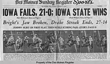 8. Robinson, John; Don Ultang (October 21, 1951). "Bright's Jaw Broken, Drake Streak Ends, 27–14". Drake University Digital Collections. Retrieved August 12, 2006.