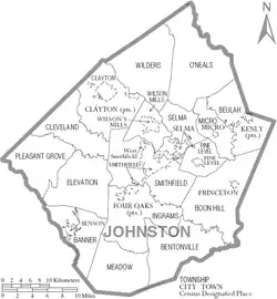 Johnston County is included in the Raleigh, NC Metropolitan Statistical Area, which is also included in the Raleigh-Durham-Chapel Hill, NC Combined Statistical Area, which has a population of 1,998,808 as of U.S. Census 2012 Population Estimates.[3]