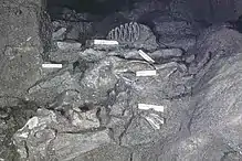The cave has been excavated and its animal remains examined on several occasions. The first period of excavation was in 1939–41, when over 4000 mammal bones were discovered deposited in the cave.[2]