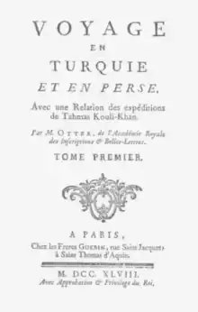 Jonas (Jean) Otter (Kristianstad, Sweden, October 1707 – Paris, September 1748) was a Swedish traveler in the Ottoman and Persian Empires, known for his book Voyage en Turquie et en Perse, avec une Relation des Expeditions de Tahmas-Kouli-Khan (1748),[1] based on his ten years in the Middle East.