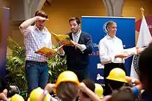Scott is actively involved in youth initiatives, having performed magic for children in a hospital's oncology ward,[123] raised money for St. Jude Children's Research Hospital,[123] and partnered with former US First Lady Michelle Obama on her 5th Annual "Let's Read Let's Move" campaign.[124] Designed to encourage children to be more active, the twins' involvement in the campaign included reading to more than 100 underprivileged children and leading them in an obstacle course.[124] With his brothers, he is also a global ambassador for World Vision Canada,[125] a Christian relief, development and advocacy organization. The three brothers went to New Delhi and visited slums as part of their commitment to No Child For Sale, which targets the fight against child labour and trafficking.[124] They participated with Target for a school library makeover, which seeks to "remodel school libraries to ignite a love of reading and help put more children on the path to graduation".[126] They also support pediatric cancer research through St. Baldrick's Foundation.[127]