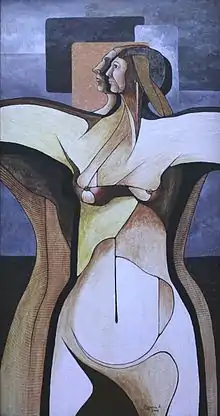 Much of the pictorial work of Figueroa has been created in the stand and from forms that are generated from the morphological structure of the female body, according to which the overall composition of the pictorial space emanates as an appendix to the form. So, Jorge Figueroa determined in his work a new property for the female figure humanist, contributing to modern humanism new meaning in a social environment characterized by the repeated use of images.