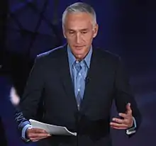Jorge Gilberto Ramos Ávalos (Spanish pronunciation: [ˈxoɾxe ˈramos]; born March 16, 1958) is a Mexican-American journalist and author. Regarded as the best-known Spanish-language news anchor in the United States of America,[4] he has been referred to as "The Walter Cronkite of Latin America".[5][6] Based in Miami, Florida, he anchors the Univision news television program Noticiero Univision, the Univision Sunday-morning political news program Al Punto, and the Fusion TV English-language program America with Jorge Ramos. He has covered five wars, and events ranging from the fall of the Berlin Wall[7] to the War in Afghanistan.[8]