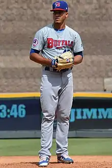 Fernández signed as an international free agent with the Toronto Blue Jays on January 5, 2012, and was assigned to the Dominican Summer League Blue Jays in July.[1] In nine games, he posted a 2–0 win–loss record, 1.52 earned run average, and 34 strikeouts in 29 2⁄3 innings pitched.[2] In 2013, Fernández made 16 relief appearances for the Rookie-level Gulf Coast League Blue Jays, and went 1–0 with a 2.70 ERA and 13 strikeouts.[2] He played the entire 2014 season with the Short Season-A Vancouver Canadians, going 1–1 with a 4.01 ERA and 24 strikeouts in 24 2⁄3 innings.[2] Fernández continued to rise through the Blue Jays minor league system, spending all of 2015 with the Class-A Lansing Lugnuts. In 35 games, he pitched to a 1–2 record, 3.31 ERA, and 41 strikeouts in 51 2⁄3 innings.[2] Fernández struggled with his command in 2016 while with the Advanced-A Dunedin Blue Jays, walking 34 batters in 43 2⁄3 innings. He ended the year with a 1–1 record, 4.12 ERA, and 41 strikeouts.[2] In the offseason, Fernández appeared in 13 games for the Estrellas de Oriente of the Dominican Winter League, and posted a 2.70 ERA and 13 strikeouts.[2]