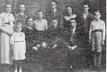 In 1910[30] Lamamié married a local girl, Sofía Alonso Moreno (1887-1970);[31] she came from the local bourgeoisie family.[32] They settled at Lamamié family estate in the Salamanca province, in-between Alba de Tormes[33] and Babilafuente.[34] Though Lamamié is often referred in historiography as “rico ganadero y terrateniente”[35] or “grande terrateniente”[36] it is not clear what the actual size of his estates was. Various sources claim that the couple had 9[37] to 11[38] children. Raised in the very religious ambience,[39] at least 6 of them joined religious orders;[40] some served in America,[41] some grew to local prominence[42] and one son was killed as a requeté chaplain in 1937.[43] The family heir Tomás Lamamié de Clairac Alonso did not become a public figure, though he held high executive functions in SEAT and other companies.[44] Neither the Lamamié de Clairac Delgado nor the Liaño Pacheco Lamamié[45] grandchildren grew to prominence; the best known, Pilar Lamamié de Clairac Delgado, is a pediatrician.[46]