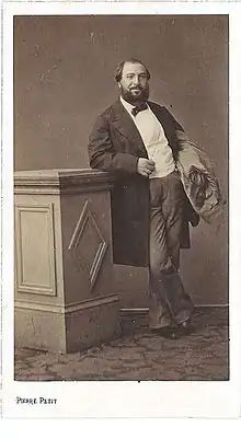 Joseph-Théodore-Désiré Barbot began his musical training at the Toulouse Cathedral and at first studied the violin.[2] He moved to Paris and entered the Paris Conservatoire, intending to study composition and the violin, but on the advice of his professor, switched to studying voice with Manuel Garcia the younger.[1][2] He won first prize in singing at the Conservatoire in 1847, and made his debut at the Paris Opera in the leading tenor role in Rossini's Le Comte Ory in that year.[3] He went on to sing leading tenor roles at the Paris Opera in works including La dame blanche of Boieldieu, Le chalet by Adolphe Adam, and La Juive by Halévy.[3] When his singing teacher at the Paris Conservatoire, Manuel Garcia, relocated to London, Barbot replaced him there. Among his pupils was soprano Caroline Douvry, whom he married. They subsequently sang together for three years in leading roles at the Théâtre Royal de la Monnaie in Brussels.[3] In 1859, Barbot replaced the originally scheduled tenor, Hector Gruyer, in the title role in the world premiere of Gounod's Faust at the Théâtre Lyrique in Paris, and achieved a great success.[4][1][2] Joseph-Théodore-Désiré Barbot was praised for his vocal range, his ability to spin beautiful high notes softly, his charm onstage, and his musical tastefulness.[3] Successful in Italian operas as well as French, he and his wife Caroline enjoyed international careers, sometimes appearing together, at leading opera houses in France, England, Italy and Russia (where Caroline created the leading soprano role of Leonora in Verdi's La Forza del Destino in 1862).[5][2][1] When Pauline Viardot retired as professor of singing at the Paris Conservatoire in 1875, he replaced her, and continued to teach singing there until his death.[3]