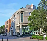 The McDade Center for Literary and Performing Arts was constructed in 1992 on the former site of the Lackawanna County Juvenile Center. Home to the university's English & Theatre department's classrooms, offices, labs, meeting spaces, and a black box studio theatre,[105] the McDade Center also houses the 300-seat Royal Theater where the University Players stage their productions.[106] The building's other features include a computer writing and instruction lab, a seminar room, a small screening room for film classes, and an office for Esprit, the university's Review of Arts and Letters.[106] Additionally, the building contains stained glass in the lobby and an engraved quotation above the main entrance.[106]