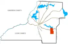 The Joseph Chaires Plantation's northern border was located at the southeast tip of Lake Lafayette. The property extended southward across Old St. Augustine Road. Today that land encompasses part of U.S. 27, Louvinia Drive, County Road 2197 (Williams Road), County Road 2196 (Old St. Augustine Road), County Road 2195 (WW Kelly Drive) as far south as County Road 259 (Tram Road) near Lake Erie and Big Lake.