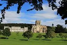 Damer was created first Earl of Dorchester and Viscount Milton on 18 May 1792.[5] His income was variously estimated at between £15,000 and £30,000 a year. Walpole described him as "the most arrogant and proud of men", and Wraxall wrote of him: "At his seat of Milton Abbey in Dorsetshire, where he maintained a gloomy and sequestered splendour, analogous to his character and habits, he had made immense landed purchases, which, exhausting his pecuniary means, extensive as they were, reduced him to a species of temporary distress."[6]