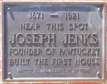 Jenckes built his home and forge on the south side of today's Main Street at East Avenue in Pawtucket. The forge was situated near the present-day Main Street Bridge where the river drops 30 feet. The site of Jenckes's home is marked by a plaque on the Pawtucket Boys Club Building at 53 East Avenue.[13][14]