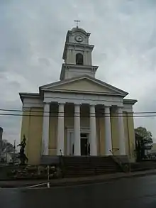 Parry is warmly remembered, particularly at the Mahoning Presbyterian Church in Danville, where he served as organist and choirmaster. Each time he visited the US, Parry returned to the church to play the organ.[105][106] The Susquehanna Valley Welsh Society holds an annual Cymanfa Canu in his honour at the church on the Sunday nearest his May 21 birthday.[33] In 2007, the church's steeple was restored with help from the National Welsh American Foundation. The re-dedication of the church was held on May 21, the birthday of Parry.[107] A plaque has been placed at one of his homes in Danville; the community marked the centenary of his death at the local Danville Festival by a memorial concert of Parry's works.[9]