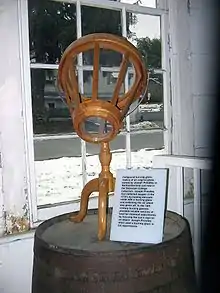 Between 1998 and 1999 a renovation that was "one of the most extensive changes in the homestead's history" set out to "restore the grounds around the house to exactly the way it was when Priestley lived" there.[71] This involved reconstructing exact replicas of the original carriage barn, hog sties, horse stalls, gardens, fences, and even the privy. These structures were based on T. Lambourne's drawings of the house and grounds that had been discovered in 1983, other records, and excavations.[81] Priestley left no written description of his laboratory, but much is known of his experiments and late-18th-century laboratories. Extensive research on the laboratory within the house was completed in 1996, including excavations that revealed two underground ovens, as well as evidence of a primitive fume hood.[82] The 1998 renovations also included work to restore the laboratory to a condition as close to its original state as possible.[53][71]