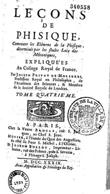 Joseph Privat de Molières (26 May 1676 – 12 May 1742) was a French physicist and mathematician, a member of the Académie des sciences and professor at the Collège royal.