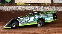 Richards raced the house car for his father's Rocket Chassis team in national dirt late model series for eleven years until 2016.[1] He won World of Outlaws Late Model Series in 2009, 2010, and 2013.[1] He raced for Best Performance Motorsports in 2016 and won the World of Outlaws championship in a Rocket chassis as well as the 2017 Lucas Oil championship.[1] He switched to Clint Bower Racing in 2019, remaining in a Rocket chassis.[4][1] As of 2019, Richards has over 100 wins in Lucas Oil and World of Outlaws competition.[1] Richards won his third dirt late model race of 2020 at Eldora Speedway by winning the $10,000 opening night of the Intercontinental Classic against a field of invitation-only drivers.[5]