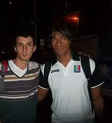 ![]() Juan Carlos Henao y un hincha del Once Caldas. 2012 | |||