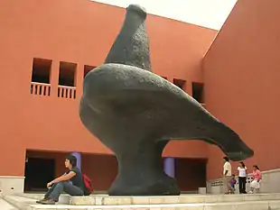 During his career, Soriano created a number of monumental sculptures which can be found in Mexico and Europe. These include El Toro at the Tomás Garrido Canabal Park in Villahermosa (1987), La Paloma at the MARCO Museum in Monterrey (1989), La Ola for the World Trade Center in Guadalajara (1989), El Caracol for the Amparo Museum in Puebla (1989), La Luna for the National Auditorium in Mexico City (1993), La Sirena for Plaza Loreto in Mexico City (1994),[4] Dafne for the Arcos-Bosques Building (1995), Mano for the Herdez Group headquarters (1995), two sculptures for the Expo Hannover 2000 in Germany, six monumental sculptures for different parts of Mexico in 2003 and several of his works can be found in a park in Warsaw.[6][7]
