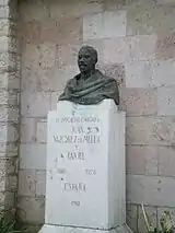 In 1946 a Madrid plaza[263] was renamed to Plaza Vázquez de Mella, hosting also his modest monument.[264] An informal Carlist Academia Vázquez de Mella existed in the 1940s,[265] but de Mella enjoyed a revival in the mid-1950s; a new generation of Traditionalist thinkers, mostly Elías de Tejada and Gambra, made his thought a point of departure for their own works[266] and elevated him to the status of an all-time Traditionalist great.[267] In the 1960s the memory of de Mella became an object of competition between two increasingly hostile groupings within Carlism, the Traditionalists and the Progressists. The latter, posing as renovators of Carlism,[268] tried to turn it into a Left-wing party and re-defined de Mella as a pre-socialist writer.[269] Major scholarly and non-partisan works on de Mella started to appear in the 1980s;[270] apart from minor studies, there were 5 published in Spain, the latest one completed in 2016.[271]