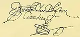 By 1693, she seemingly ceased to write, rather than risking official censure. However, there is no undisputed evidence of her renouncing devotion to letters, but there are documents showing her agreeing to undergo penance.[7] Her name is affixed to such a document in 1694, but given her deep natural lyricism, the tone of the supposed handwritten penitentials is in rhetorical and autocratic Church formulae; one is signed "Yo, la Peor de Todas" ("I, the worst of all women").[7] She is said to have sold all her books,[13] then an extensive library of over 4,000 volumes, and her musical and scientific instruments as well. Other sources report that her defiance toward the Church led to all of her books and instruments being confiscated although the bishop himself agreed with the contents of her letters.[21]
