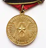 The medal was awarded on behalf of the Presidium of the Supreme Soviet of the USSR by commanders of military units, formations, the heads of agencies, institutions; by republican, territorial, regional, district or municipal military commissariats.[1]