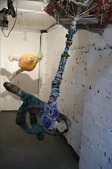 Judith Scott (May 1, 1943 – March 15, 2005) was American fiber sculptor, born with Down Syndrome and deaf.[2] She was internationally renowned for her art.[3] In 1987, Judith was enrolled at the Creative Growth Art Center in Oakland, California which supports people with developmental disabilities.[4] There, Judith discovered her passion and talent for abstract fiber art and she was able to communicate in a new form.[2] An account of Scott's life, Entwined: Sisters and Secrets in the Silent World of Artist Judith Scott (2016) has been written by her twin sister.