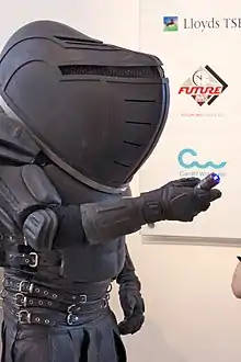 Judoon are galactic police, brutal in their precise application of the law and highly logical in their battle tactics, but not very intelligent. In fact, the Doctor states that, whilst their behaviour is (on the surface) that of a military police force, they are really little more than "interplanetary thugs" for hire. They have no jurisdiction on Earth and no authority to deal with human crime (when hunting a fugitive alien in an Earth hospital, they transported the building to the Moon); they will, however, strictly obey any laws on the planet they are on (e.g. road speed limits).[1] The Judoon carry energy weapons which can incinerate humans.