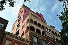 Schnabel lives in New York City with his wife Louise Kugelberg.[28] Kugelberg is a Swedish interior designer. She is also the co-editor and co-writer of At Eternity's Gate. Schnabel maintains studios in New York City and in Montauk at the east end of Long Island. Schnabel resides at 360 West 11th Street, in a former West Village horse stable that he purchased and converted for residential use, adding five luxury condominiums in the style of a Northern Italian palazzo. It is named the Palazzo Chupi, and it is easy to spot because it is painted pink.[29]