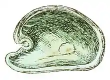 | A drawing of the shell (the exterior of the right valve) of a taxon named "Julia borbonica" | |