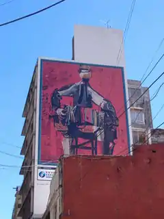 A reproduction of Vanzo's Bandoneón, depicting a tango musician playing a bandoneón, was painted to scale on the wall of a building in downtown Rosario in 2006, as part of an "urban museum" project.