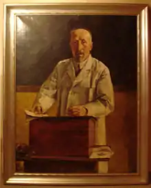 On April 1, 1933, in the course of the Nazi boycott of Jewish businesses, the National Socialists denied him access to his clinic in Frankfurt-Sachsenhausen.[3] At the instigation of a scholar of his, who sought his position and found out Strasburger had a Jewish grandfather (Julius Wertheim, 1817 or 1819–1901, banker in Warsaw),[4] an "Aryan certificate" was denied and they removed him from office on Sep. 28, 1934. He died shortly after from a heart attack.[5]