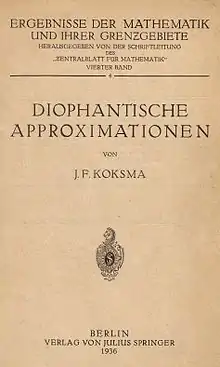 One of Koksma's main works was the book Diophantische Approximationen, published in 1936 by Springer. He also wrote several papers with Paul Erdős.