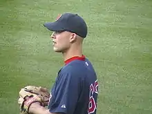 Justin Daniel Masterson (born March 22, 1985) is an American former professional baseball starting pitcher. Drafted by the Red Sox in the second round of the 2006 MLB draft from San Diego State University, he made his MLB debut two years later. Masterson also played in MLB for the Cleveland Indians and St. Louis Cardinals. Known for primarily throwing a sinking fastball, the right-hander stands 6' 6" (198 cm) tall, and weighs 250 lb (113 kg).