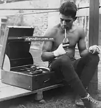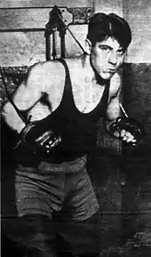 Justo Suárez (Buenos Aires, January 5, 1909 – Cosquín, Córdoba, August 10, 1938), nicknamed "El Torito de Mataderos" ("The Little Bull of Mataderos)", was a popular Argentine light weight boxer. His huge popularity was widely greater than his professional achievements as a fighter. Suárez was the first sportsman that became an idol and fan-favorite during the decade of the 1930s.