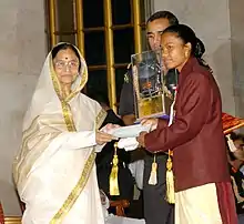 The President, Smt. Pratibha Patil presenting the Arjuna Award -2006 to Ms. Jyoti Sunita Kullu for Hockey (Women) at a glittering function, in New Delhi on August 29, 2007