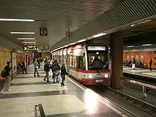 The station is a junction station, which has platforms on two levels: the high-level platforms are used by trains running in the east-west direction across the Hohenzollern Bridge to and from Köln Hauptbahnhof. The lower level (Köln Messe/Deutz tief) is used by trains running in a north-south direction bypassing the Hauptbahnhof from Köln-Mülheim station towards Troisdorf.[7] It serves an important function in providing some relief for the Köln Hauptbahnhof bottleneck—some ICE services call at Köln-Deutz instead of Köln Hbf, eliminating the need for changing direction, while many regional trains from the west terminate here to prevent them blocking the Hauptbahnhof.[8]